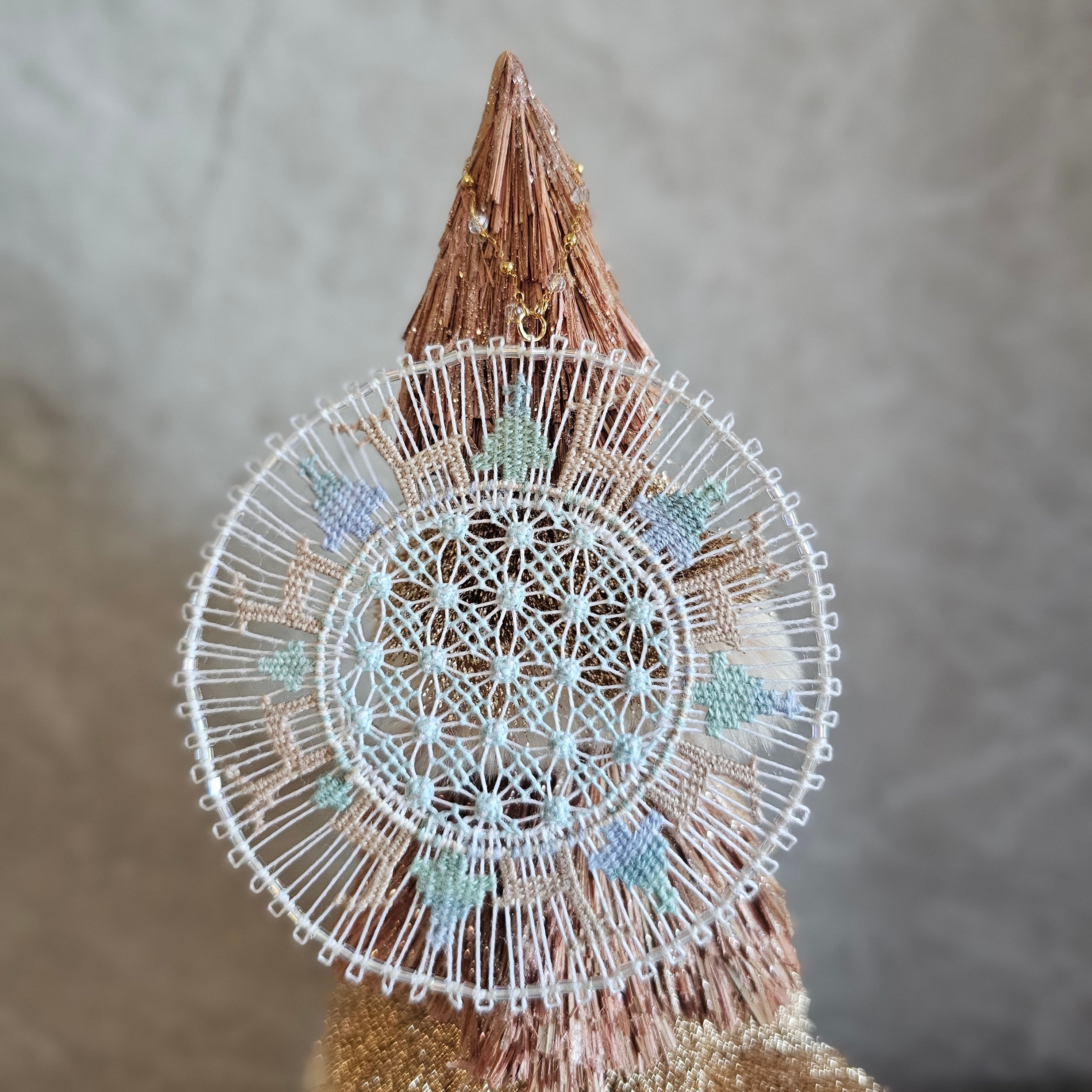 また、オーナメントの周りには、透明な白のビーズをひとつひとつ丁寧にあしらいました。